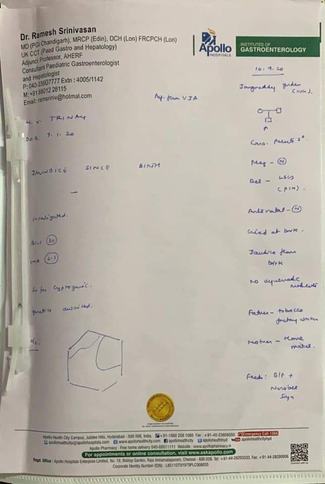 From the month baby born they are consulting Ramesh Hospitals Vijayawada and then based on suggestion and reference they went to multiple Govt hospitals but at last Apollo is something they decided and even Ramesh Hospital referred the particular doctor from Apollo.