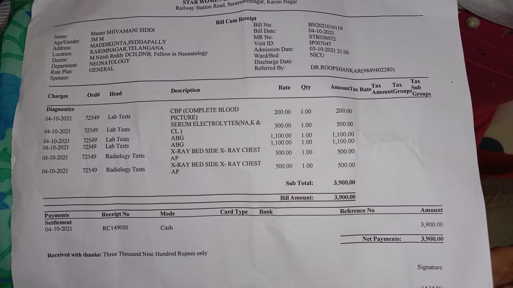 Right now his treatment is going on in start hospital karimnagar . And our daily hospital expenditure is around 25 to 30 k.